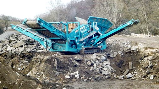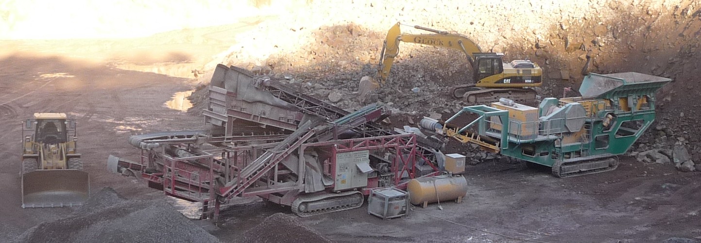 Mobile Bauschutt- und Natursteinaufbereitung Abbruch - Erdbau |