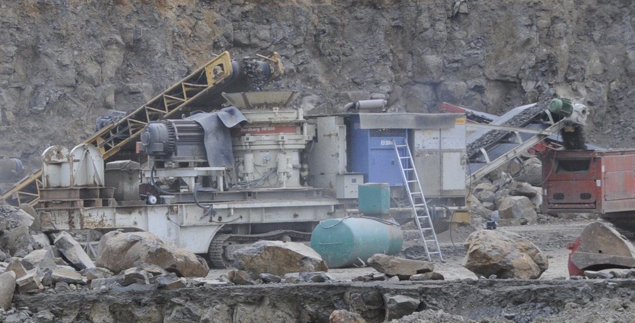 Kettenmobiler Kegelbrecher Nordberg HP 300 Aufgabegrösse max. 350 mm Durchsatzleistung zwischen 200 und 600 Tonnen pro Stunde je nach Aufgabematerial und Spalteinstellung |