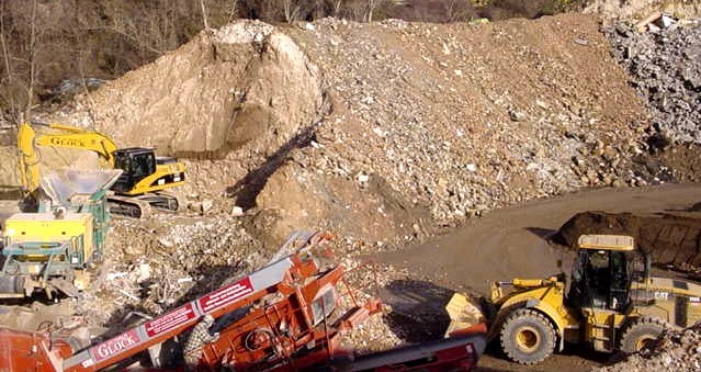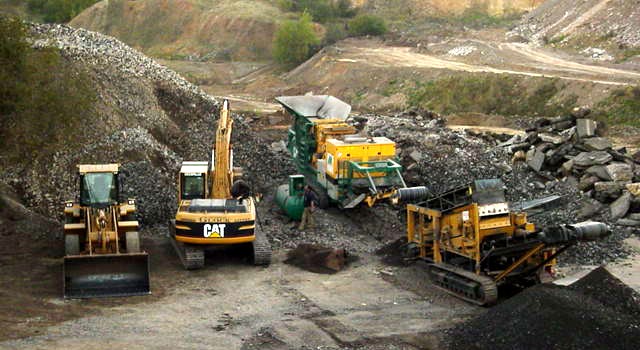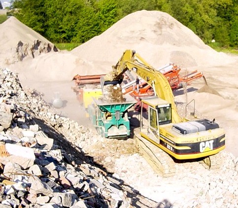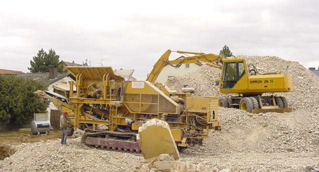 Mobile Bauschutt- und Natursteinaufbereitung Abbruch - Erdbau |