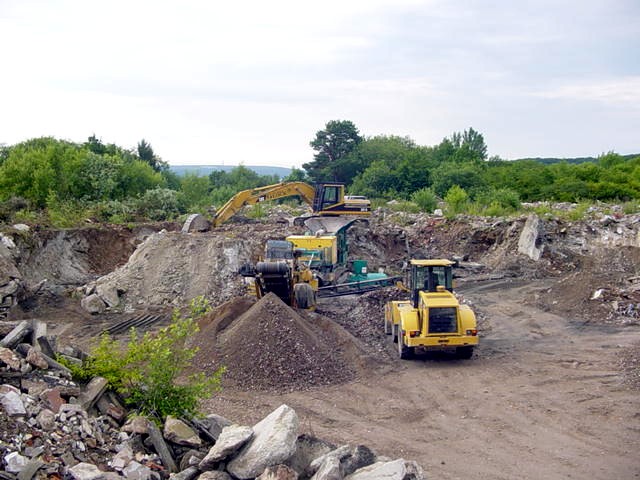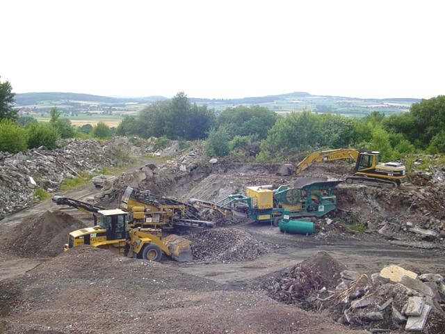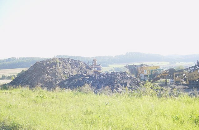 Aufbereitung von 35.000 Tonnen Bauschutt Abbruchmaterial ( ehem. Tettauer Glaswerk ) |