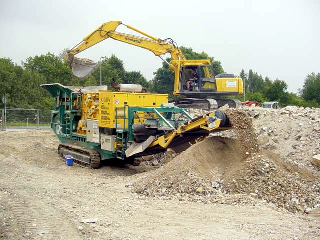 Aufbereitung von 20.000 Tonnen Bauschutt auf Korngröße 0-45 und 45-x mm + Zerkleinerung der Betonbrocken über 1Meter Kantenlänge