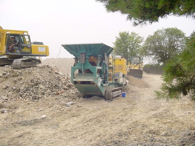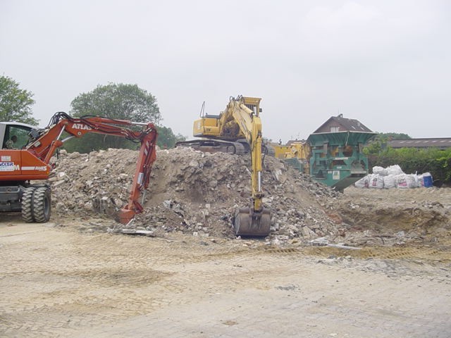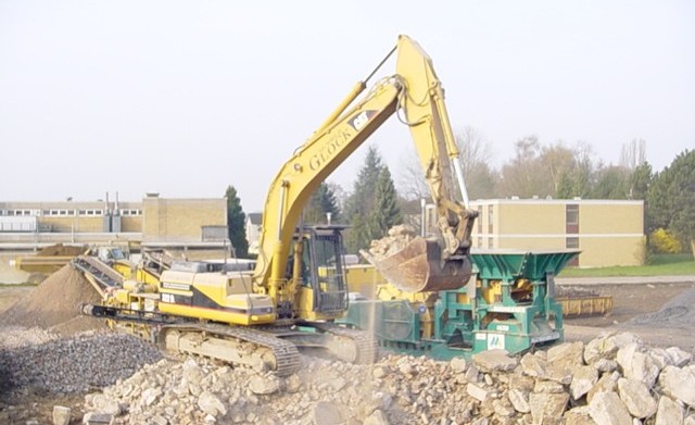 Aufbereitung von 20.000 Tonnen Bauschutt auf die Korngrößen 0 - 45 mm und 45 - x mm + Zerkleinerung der Betonbrocken über 1 Meter |