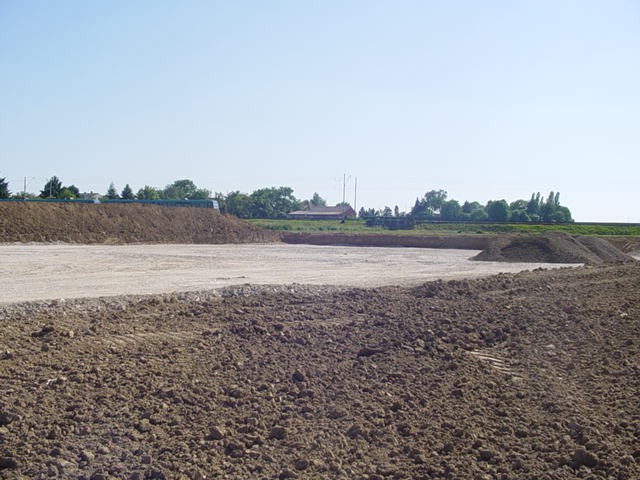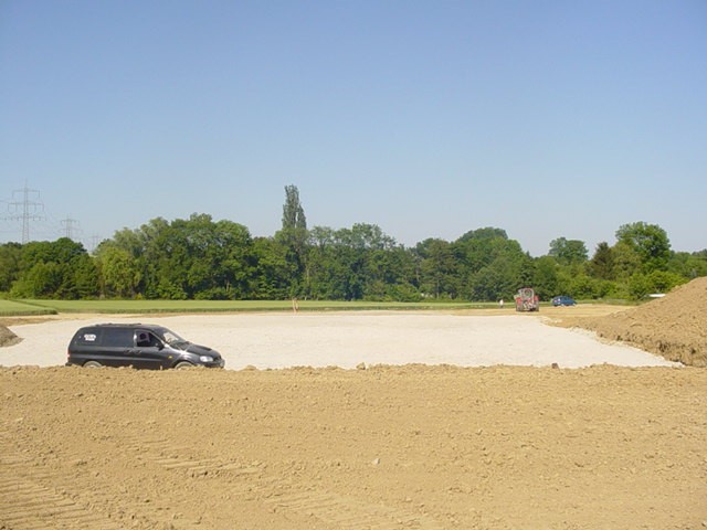 2600 m² Mutterboden abgeschoben und auf Miete gesetzt anschließend 2500 m³ Recyclingmaterial eingebaut |